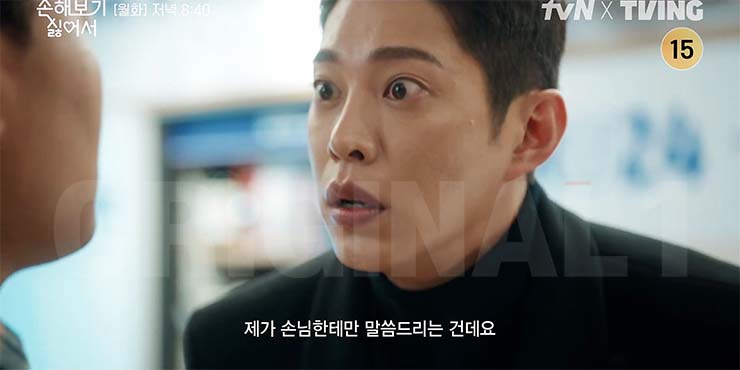 손해 보기 싫어서 5회에서 연락 두절, 행방 묘연, 잠적했던 남편이 나타났다! 그것도 신입사원으로? 손해영(신민아)은 꿀비교육 신입사원으로 나타난 김지욱(감용댜)에 경악한다. 꿀비로 올 수밖
