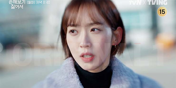 손해 보기 싫어서 3회에서 김지욱(김영대)의 본모습(?)에 놀란 손해영(신민아)은 지욱에 불만을 쏟아낸다. 자신에 대해 많은 걸 알고 있는 지욱을 미심쩍게 여긴다. 남편이 잘생겼다는 소문에 팀