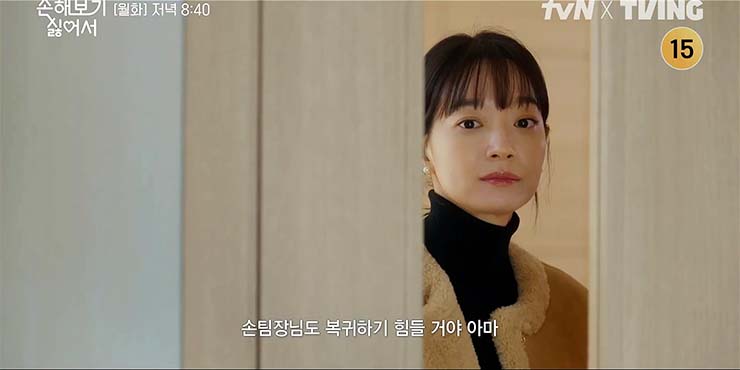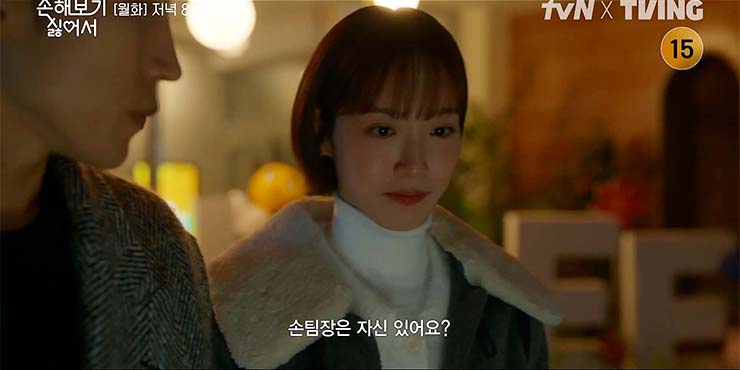 손해 보기 싫어서 6회에서 꿀비교육에서 제일 핫한 사람은 누구? 예고 없이 자신의 정체를 공표한 지욱 덕분에 사내 화제의 인물이 된 팀장 손해영(신민아)과 신입 김지욱(김영대). 해영은 남편