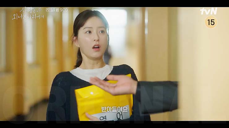 사랑은 외나무다리 6회에서 석지원(주지훈)은 전날 밤 윤지원(정유미)과의 키스를 기억하지 못해 윤지원의 분노를 산다. 차지혜(김예원)는 석지원과의 불편한 관계를 청산하려 고백을 없던 일