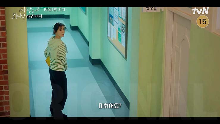 사랑은 외나무다리 8회에서 워크샵에서 석지원(주지훈)은 윤지원(정유미)과 시간을 보내려 노력하나 계획이 꼬인다. 석지원과 공문수(이시우)의 노래 대결 해프닝이 벌어진다. 차지혜(김예원)는