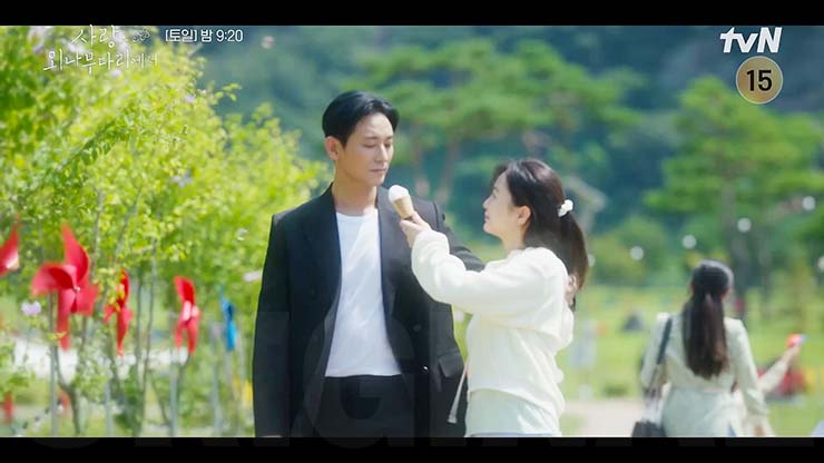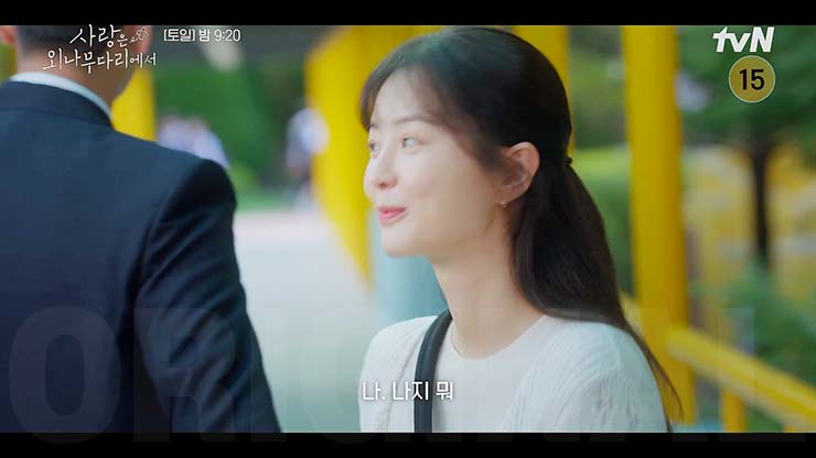 사랑은 외나무다리 7회에서 석지원(주지훈)과 윤지원(정유미)은 미친 라일락 나무 아래서 시한부 연애를 시작한다. 차지혜(김예원)는 윤지원의 핸드폰을 숨기다 발각된다. 석경태(이병준)는 독