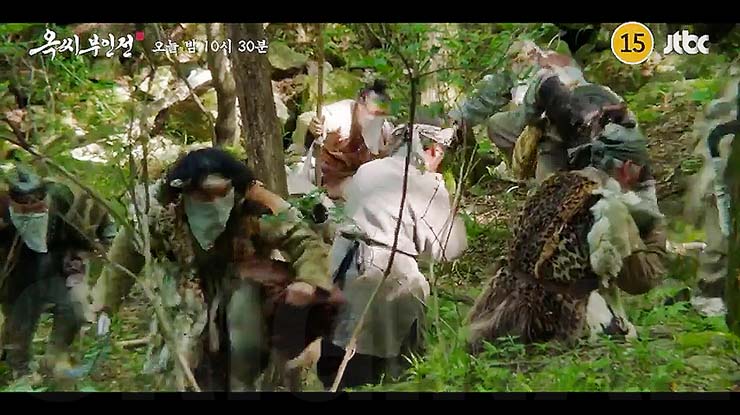 옥씨부인전 4회에서 성규진(성동일)과 함께 사라진 아이들을 찾으러 나선 옥태영(임지연). 갑자기 나타난 복면의 사내 덕분에 산으로 끌려가던 아이들의 일부를 구하지만...JTBC 토일드라마 옥씨