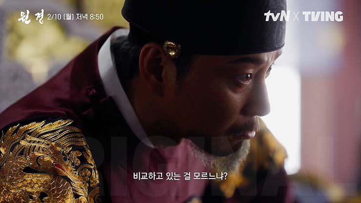 원경 11회에서 선을 위한 선택. 세자를 다그쳐 깨우치려는 이방원(이현욱)과 다른 가능성을 보는 원경(차주영).