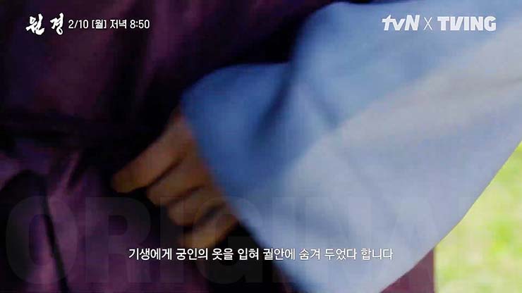 기생에게 궁인의 옷을 입혀 궐안에 숨겨 두었다 합니다.