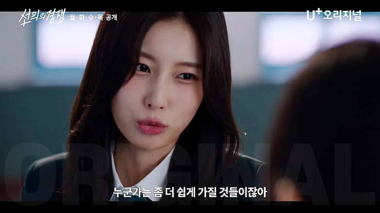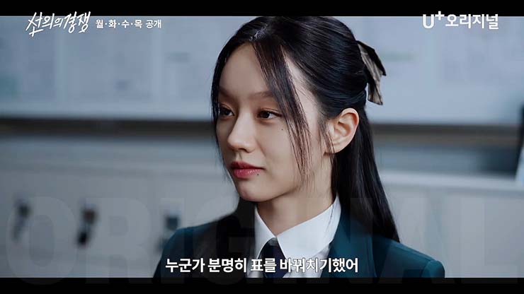 살벌한 입시 경쟁이 벌어지는 대한민국 상위 1% 채화여고에 전학온 '슬기'에게 각자의 욕망을 드러내는 친구들 그리고 수능 출제 위원이었던 아버지의 의문사를 둘러싼 미스터리 걸 스릴러, U+모바일tv 오리지널 드라마 선의의 경쟁 5회는 2025년 2월 17일(월) 오전 0시에 공개된다.