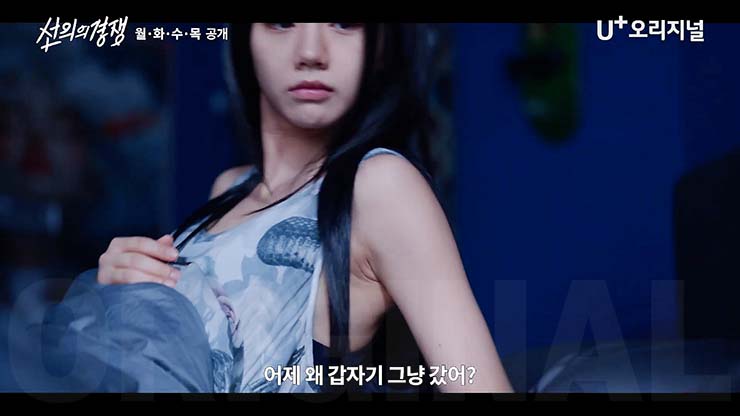 선의의 경쟁 4회에서 반장선거 이후, 제이와 가까워진 슬기는 제이의 집에서 함께 자게 된다. 계속해서 울리는 제이의 핸드폰 소리에 깬 슬기는 결국 핸드폰을 열어보고 큰 충격에 빠진다. U+모