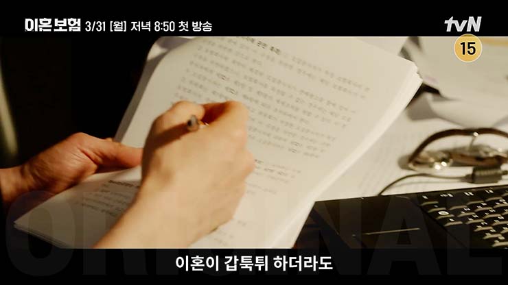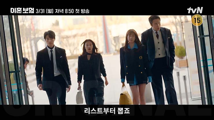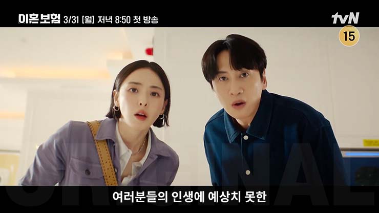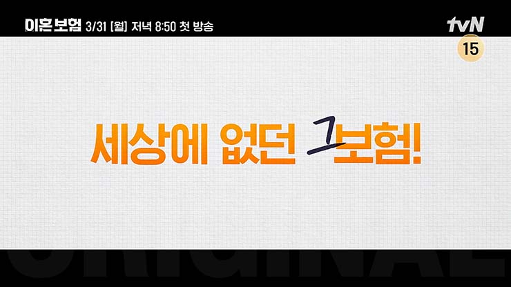 tvN 월화드라마 이혼보험 1회는 2025년 3월 31일(월) 오후 8시 50분 첫 방송 예정이다.