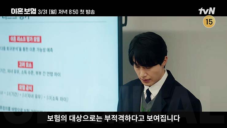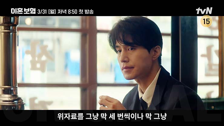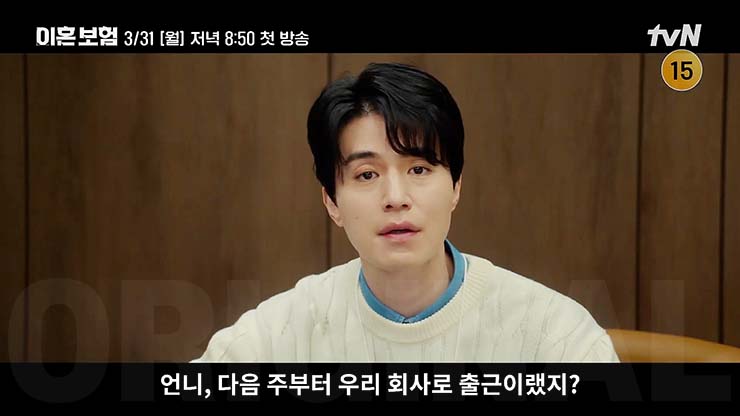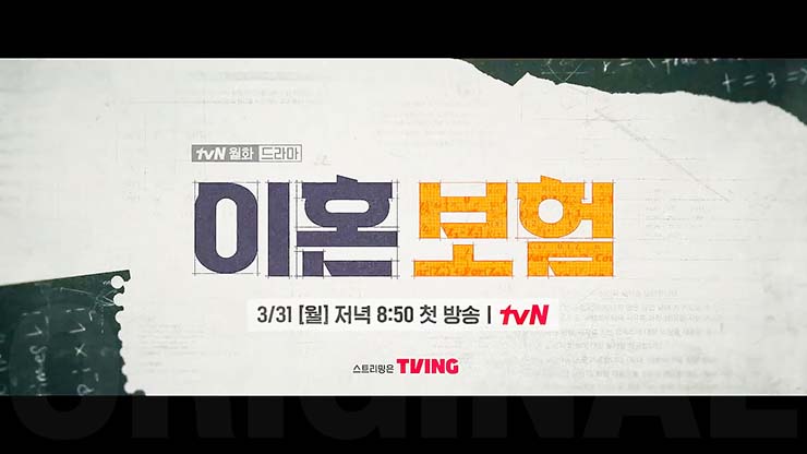 tvN 월화드라마 이혼보험 1회는 2025년 3월 31일(월) 오후 8시 50분에 방송된다.