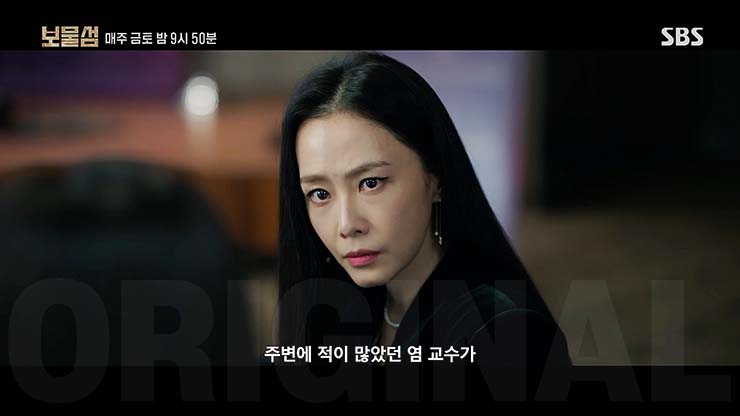 SBS 금토드라마 보물섬 16회 마지막회에서 염장선 실종 1년. 염장선이 살해당했다는 소문이 퍼져나간다.