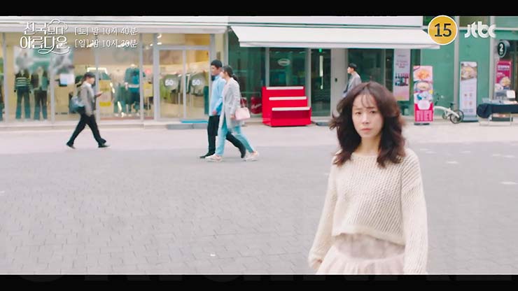천국보다 아름다운 8회에서 낙준(손석구)은 사라진 기억을 찾기 위해 노력하는 솜이(한지민)와 지상업무를 함께하게 되고, 그러던 중 솜이는 낙준을 향해 생겨버린 알 수 없는 감정에 혼란스러