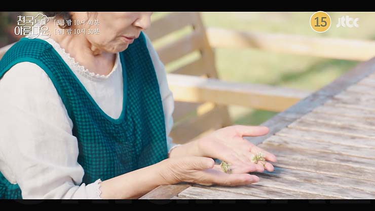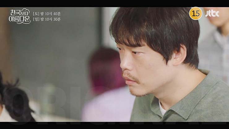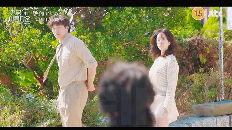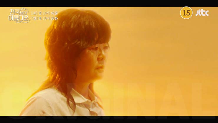 천국보다 아름다운 9회에서 강정구와 난투 중인 낙준(손석구)을 구하기 위해 달려들어 초인적인 힘을 발휘하는 솜이(한지민). 이를 목격한 낙준은 솜이의 기억이 자신의 과거와 연결되어 있음을 알게 된다.