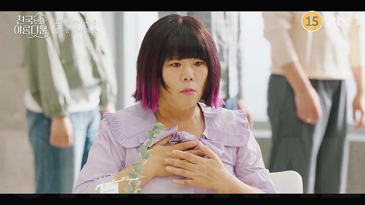 천국보다 아름다운 8회에서 낙준(손석구)은 사라진 기억을 찾기 위해 노력하는 솜이(한지민)와 지상업무를 함께하게 되고, 그러던 중 솜이는 낙준을 향해 생겨버린 알 수 없는 감정에 혼란스러