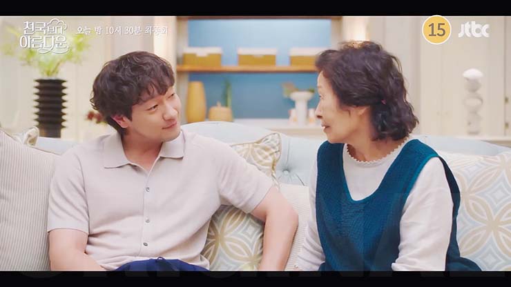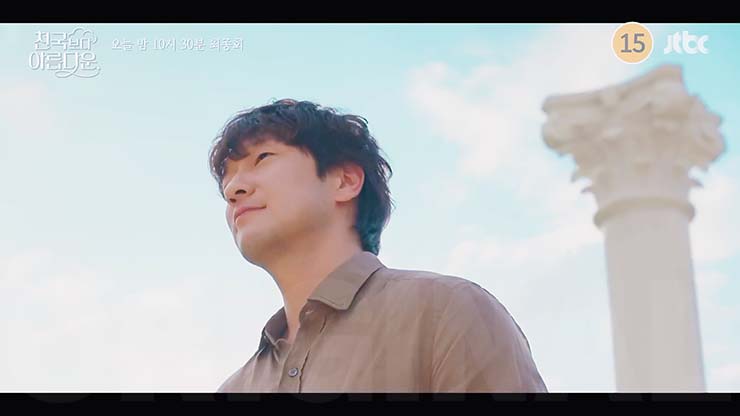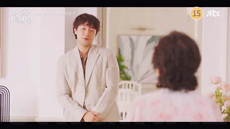 천국보다 아름다운 8회에서 낙준(손석구)은 사라진 기억을 찾기 위해 노력하는 솜이(한지민)와 지상업무를 함께하게 되고, 그러던 중 솜이는 낙준을 향해 생겨버린 알 수 없는 감정에 혼란스러
