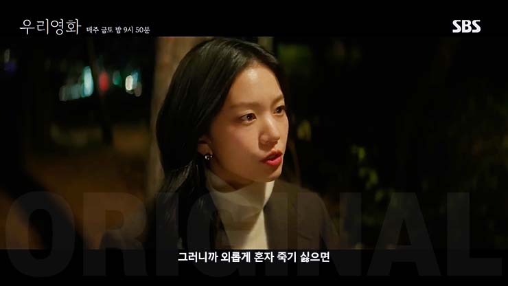 우리영화 8회에서 "싸구려 동정이랑 사랑을 구별 못 해?" 이설, 시한부 전여빈에게 마음 주는 남궁민에 따끔한 한마디.SBS 금토드라마 우리영화 8회는 2025년 7월 5일(토) 오후 9시 50분 방송된다.한