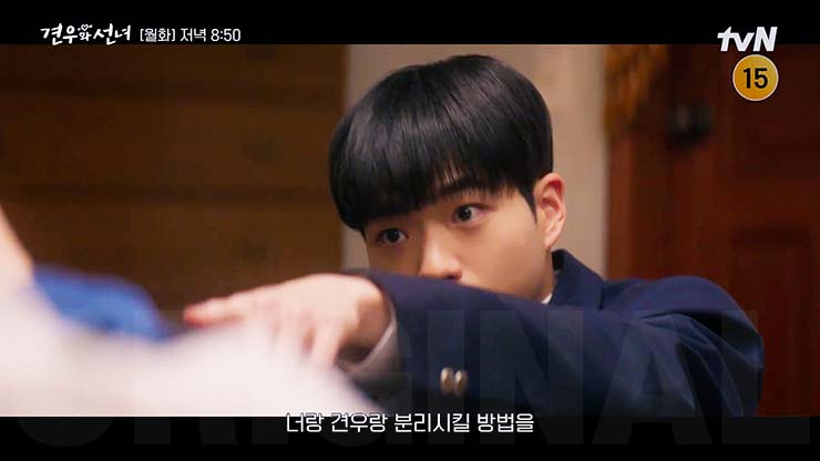 견우와 선녀 8회에서 성아와 견우는 봉수를 가두기 위해 비밀 연애처럼 손을 맞잡고 학교를 누빈다. 가방 속에 숨긴 손, 체육복 아래 감춘 스킨십. 고백도, 숨결도, 웃음도… 모든 감정이 조심스레 포개진다.
