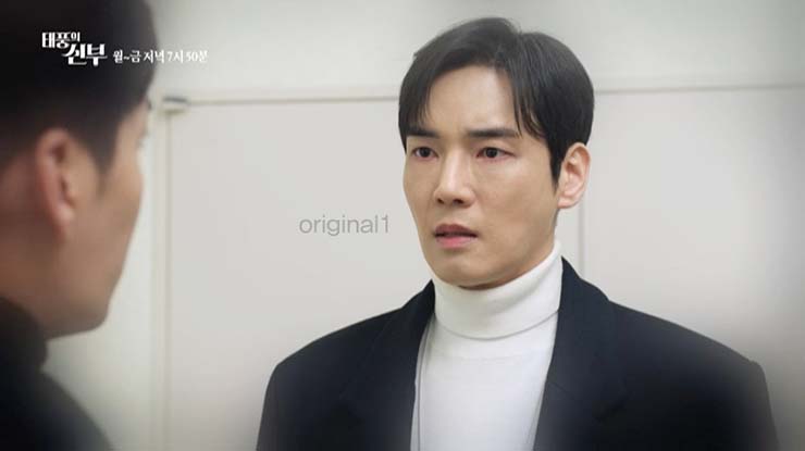 지난 1월 31일(화) 방송된 태풍의 신부(연출 박기현, 극본 송정림) 75회에서 서연은 강바다(오승아)의 폭로로 백산에게 정체를 들켰다. 바다는 윤산들(박윤재)을 빼돌린 사실이 들통나 집에서 쫓겨났다. 32 덕분에 서연은 위기를 모면하지만, 백산은 서연의 뒷조사를 지시했다. 02 백산은 서연에게 천사화 서류를 요구하고, 서연은 가족 모두가 집을 비운 사이 서윤을 찾는 데 성공했다. 하지만, 기다렸다는 듯이 백산이 나타났다.