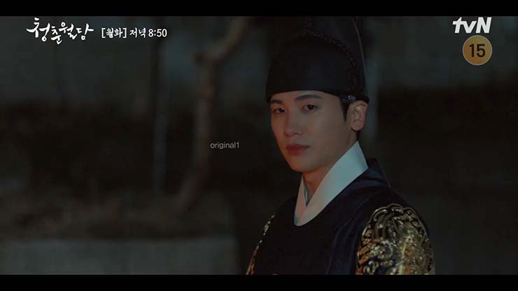 청춘월담 2회 에서 이환은 사냥터에서 새로운 위기에 직면한다. 그 충격으로 얼어붙고, 누구도 믿을 수 없는 상황에 처한다. 민재이는 환에게 결백을 호소한다. 자신의 가족이 죽은 것은 네 탓이라며 환을 원망한다.