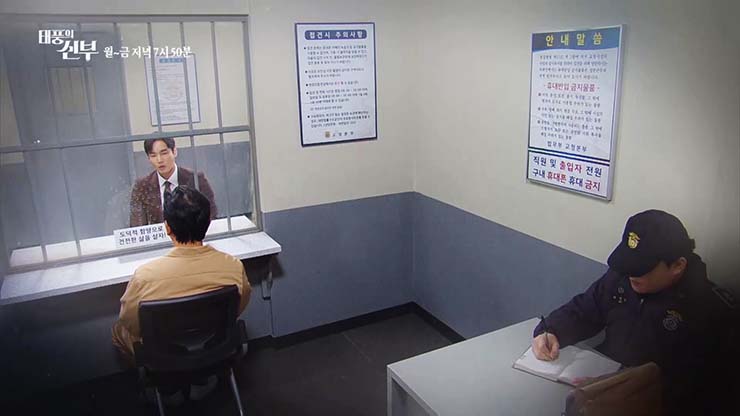 10일(금) 방송 예정인 태풍의 신부 83회에서 태풍은 구치소를 찾아가 대근에게 증거들을 오픈하라고 회유하고, 대근은 갈등한다.