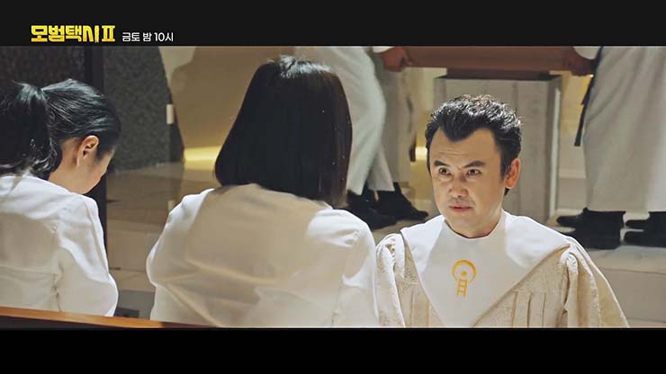 지난 3월 12일(일) 방송된 모범택시 시즌2(극본: 오상호, 연출: 이단) 6회에서 강필승(김도윤)에게 가짜 신혼부부 행세를 들킨 김도기(이제훈)와 안고은(표예진)은 직장 동료사이라고 둘러대고 위기를 모면했다.