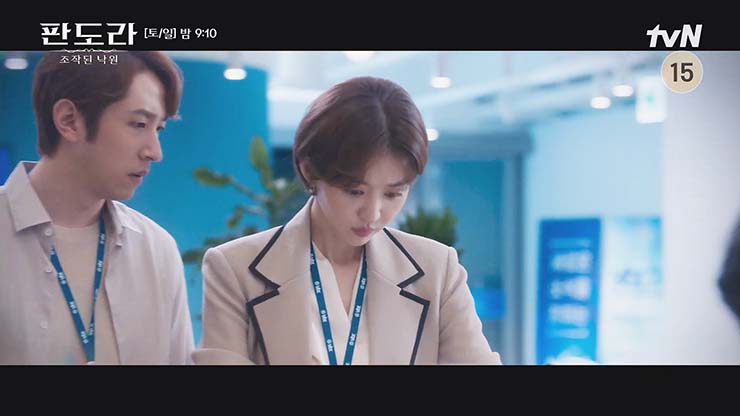 김선덕(심소영) 원장과 같이 있는 지우와 자신의 동생이 겹쳐 보이며 또 다른 과거의 기억이 떠올랐다. 18일(토) 방송 예정인 판도라: 조작된 낙원 3회에서 홍태라는 표재현에게 대선 출마를 포기해 달라고 간청한다. 태라의 타운 하우스에서 협박 메시지가 발견괴고, 태라는 스스로 한울정신병원 김선덕 원장을 찾아간다.