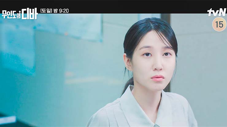 무인도의 디바 5회에서 기호를 만나기 위해 약속된 장소로 나간 목하. 그러나 그 약속은 봉완의 함정이었다. 보걸의 도움으로 가까스로 봉완을 피한 목하는 두려움과 아쉬움에 눈물 흘린다. 한