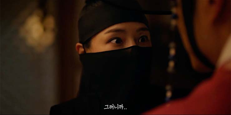 여화(이하늬)는 강필직(조재윤) 상단의 인신매매 가능성을 수호(이종원)에게 이야기 하지만 수호는 이 일은 국법으로 해결할 일이지, 일개 복면 따위가 나설 일이 아니라며 단칼에 여화를 잘라낸다.