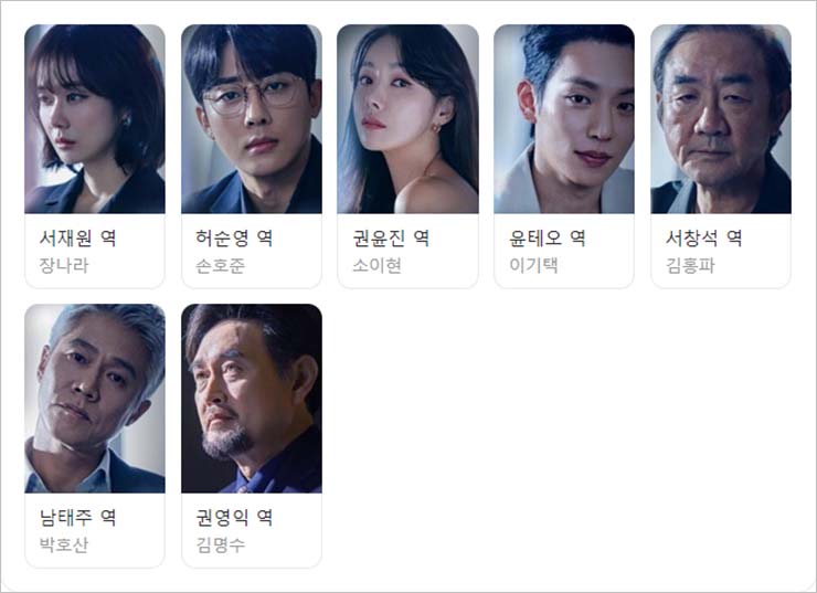 서재원 (장나라), 허순영 (손호준), 권윤진 (소이현), 윤테오 (이기택), 서창석 (김홍파), 남태주 (박호산), 권영익 (김영수)