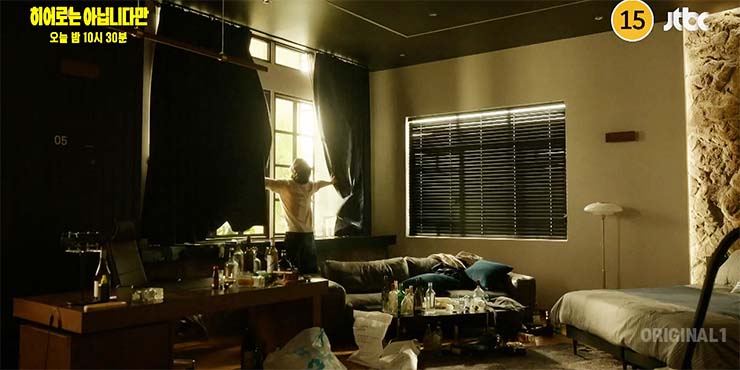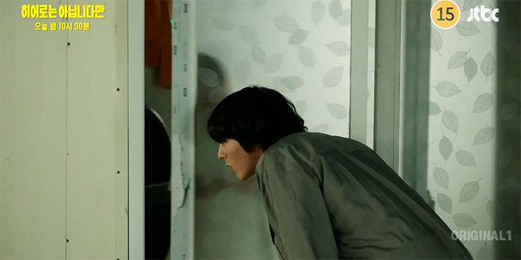 히어로는 아닙니다만 6회에서 운동하고, 술병도 치우고. 달라진 모습을 보이는 귀주(장기용). 13년 전 다해를 구하는 것이 본인일 거라는 생각에 귀주는 제법 오랜만에 의지가 생긴다.
