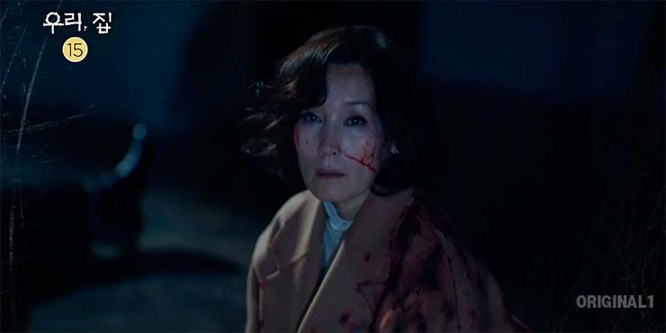 우리, 집 10회에서 양평별장에 도착한 영원(김희선)은 피범벅인 사강(이혜영)과 그 앞에 놓인 요섭(양재현)의 시체를 발견하고, 곧 들이닥친 경찰에 의해 둘은 경찰서로 향한다.