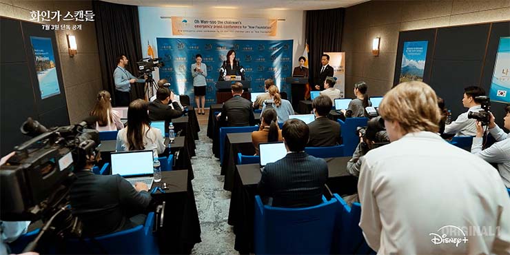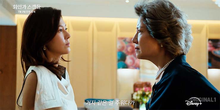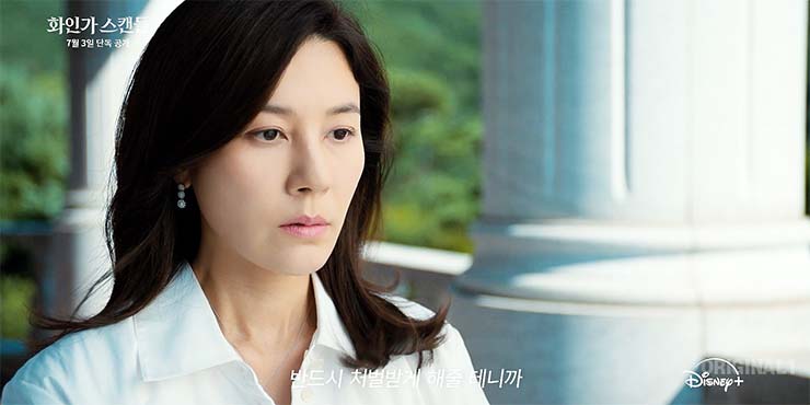 화인가 스캔들 7회 8회 횡령을 덮을 더 큰 이슈가 있다?! 박미란(서이숙)은 오완수(김하늘)과 서도윤(정지훈)의 스캔들을 꺼내고 김용국(겅겨운)이 이혼을 거부한다. 그 이유는?디즈니+ 드라마 화