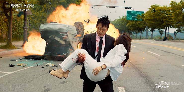 화인가 스캔들은 7월 3일(수) 공개 예정인 디즈니+ 드라마다. 화인가 스캔들은 대한민국 1% 화인그룹을 둘러싼 상속 전쟁으로 인해 생명의 위협을 받는 나우재단 이사장 완수와 그녀의 경호원 도윤이 황인 그룹의 비밀을 마주하게 되는 치명적 스캔들 이야기다.